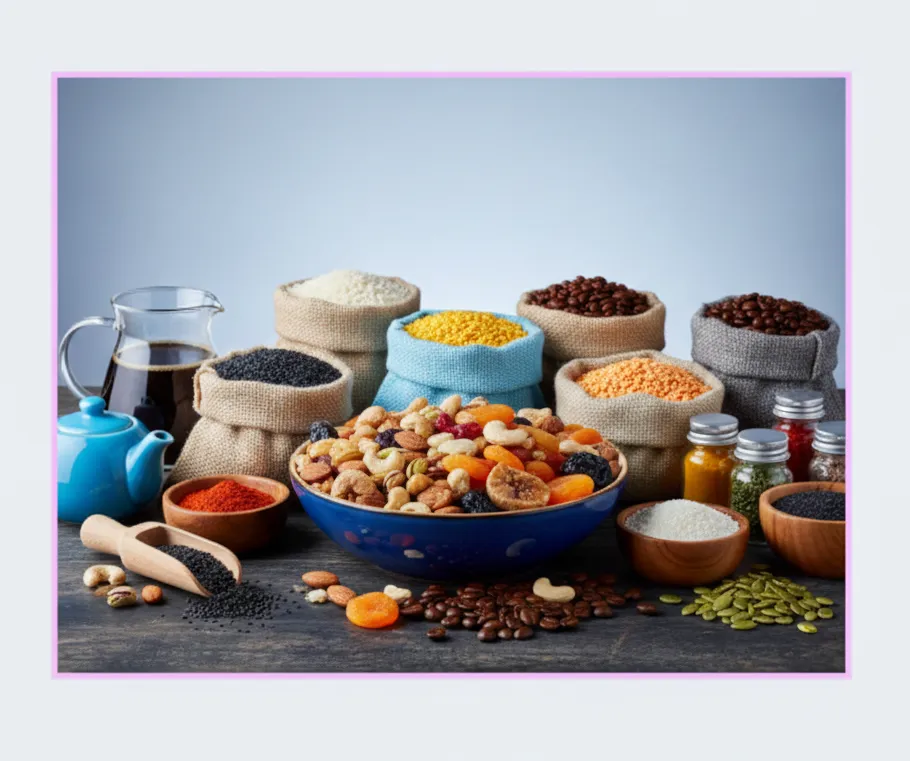 Mixed selections of pulses, spices, nuts, and dried fruits — curated to your demand.