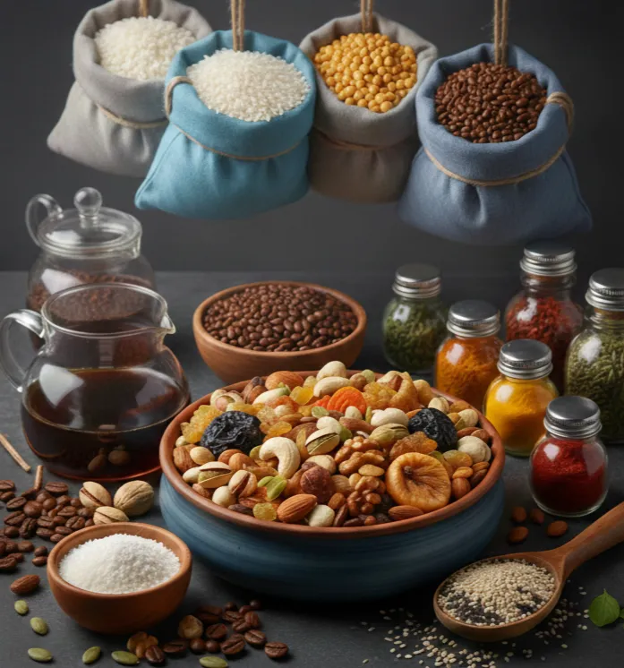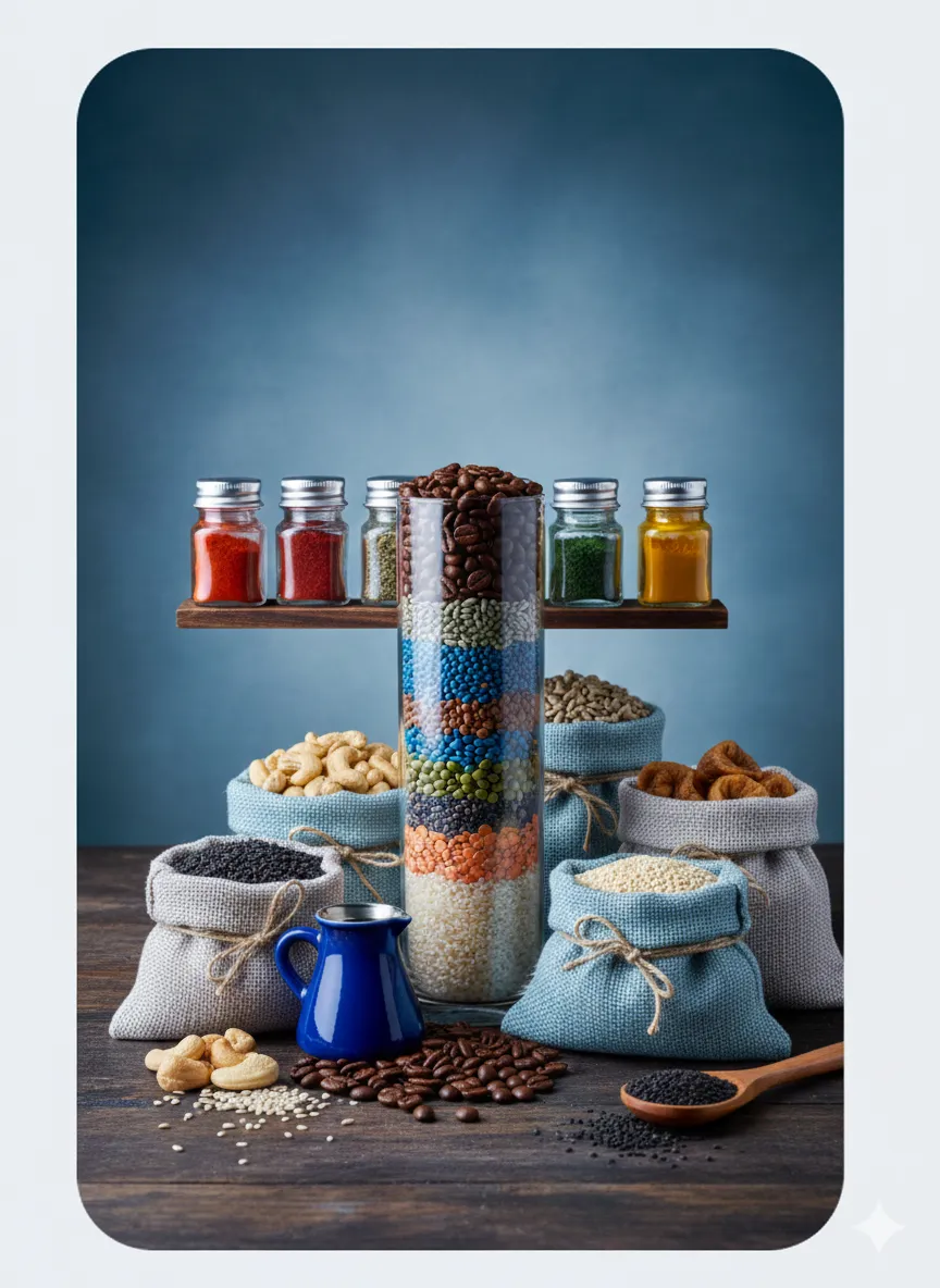 Coffee, rice, pulses, spices, nuts, and dried fruits — spec-defined, trade-ready supply.